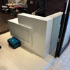 このカウンターは、柔らかな曲線を描くホワイト大理石柄のパネルと、落ち着いたマットブラックの組み合わせが特徴で、来訪されるお客様にモダンで上質な印象を与えます。