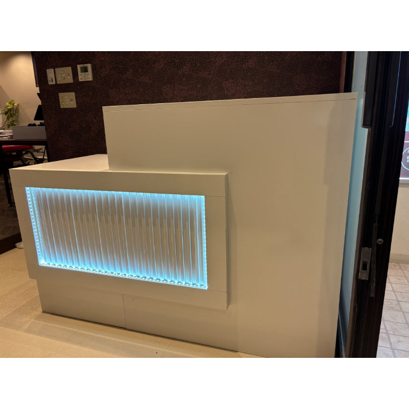 先日、設置サービスをご利用いただいた一件でございます。LEDライトの点灯後、お客様から「思っていた以上に美しい!」と喜びのお声をいただき、すぐさま上司へ「この受付カウンターの購入は最高の判断だった」とご報告されたとのことです。お役に立てたようで、僭越ながら担当者一同、大変嬉しく思っております。