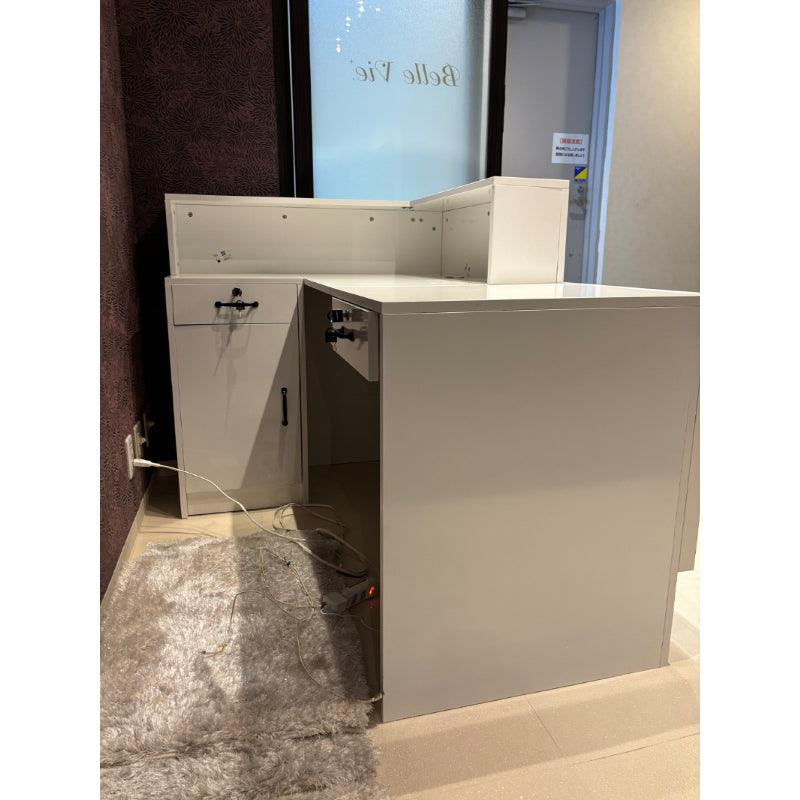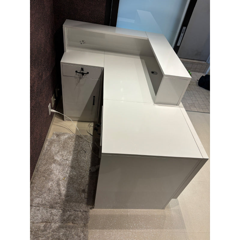 業務に必要な用品や書類を効率的に整理できるよう、執務側には機能的な収納スペースが充実しています。また、引き出しには鍵ロックが付いているため、重要な書類やファイルも安全に管理できます。