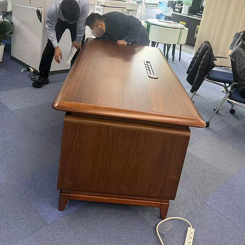 この度は、お客様はこの役員デスクとキャビネットを待たれておりましたが、税関検査と港湾システムの混乱により納期が遅れました。お客様にはご理解いただき、商品到着後はスムーズに設置が完了しました。